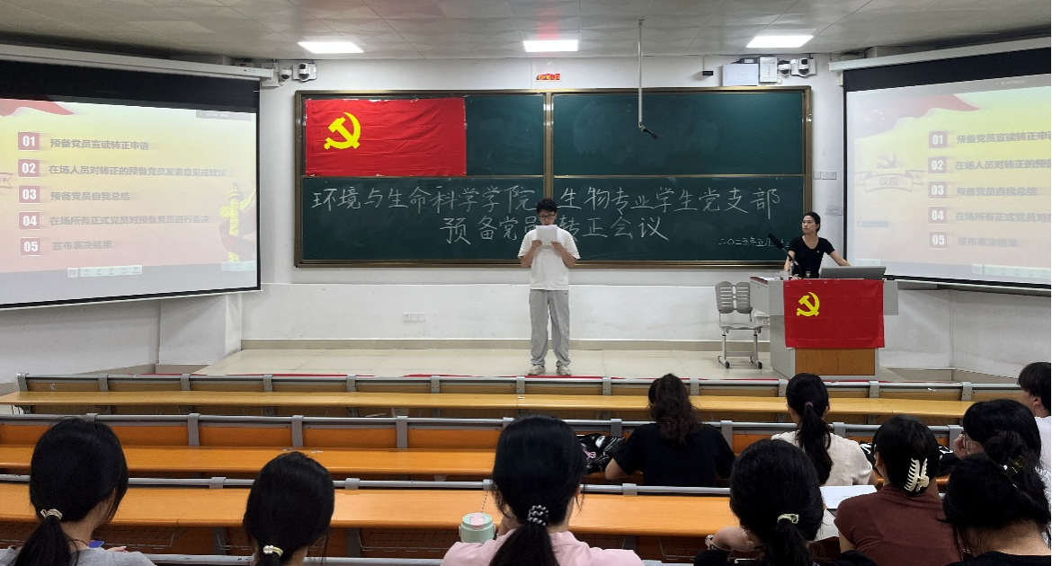 为加强党的队伍建设,贯彻落实党员发展工作,增强基层党组织的凝聚力,必赢3003no1线路检测中心生物专业学生党支部于2025年5月23日在武鸣校区1号教学楼115教室召开预备党员转正会议。