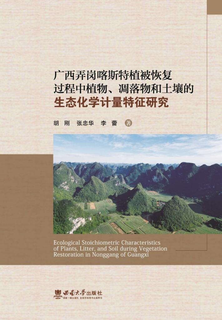 近日,必赢3003no1线路检测中心胡刚副教授等人的学术著作《广西弄岗喀斯特植被恢复过程中植物、凋落物和土壤的生态化学计量特征研究》,由西南大学出版社出版。