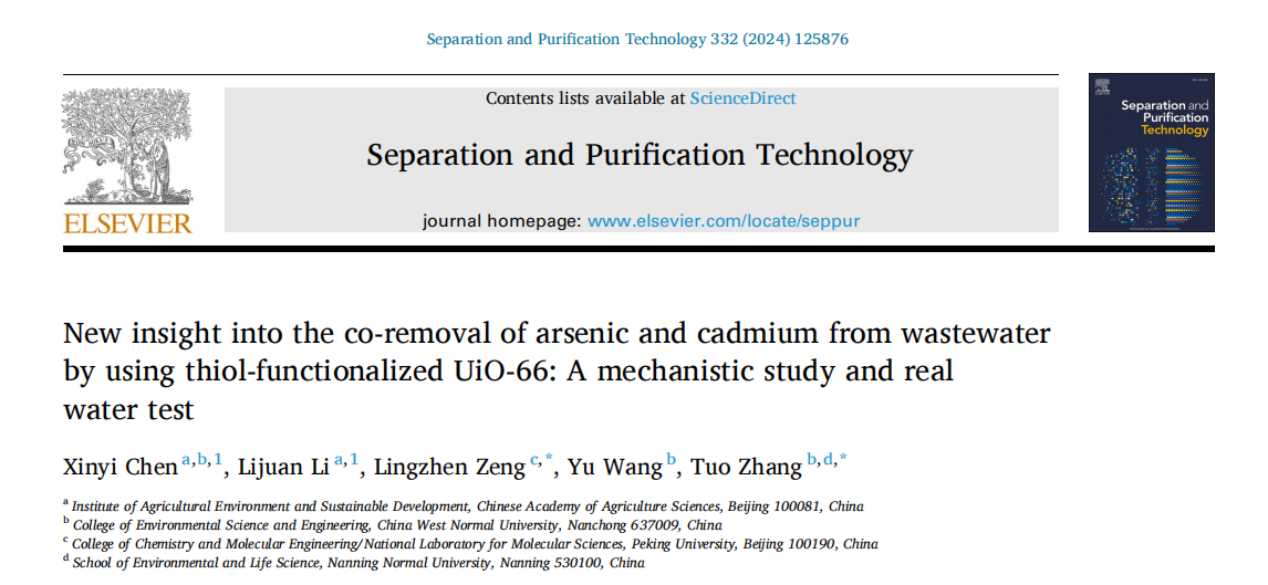 近日,必赢3003no1线路检测中心必赢3003no1线路检测中心张拓副教授分别与北京大学、新疆农业大学、中国农业科学院和湖南省农业科学院合作在工程技术/化工领域著名期刊《Separation and Purification Technology》(中科院1区TOP,JCR1区,IF2023=8.1),综合类领域期刊《Scientific Report》(中科院2区,JCR1区,IF2023=3.8)、农业综合领域期刊《AgricultureBasel》(中科院2区,JCR 1区,IF2023=3.3)、土壤学领域期刊《Journal of Soil Science and Plant Nutrition》(中科院3区,JCR1区,IF2023=3.4)发表了题为《New insight into the co-removal of arsenic andcadmium from wastewater by using thiol-functionalized UiO-66: A mechanistic study and real water test》、《Influence and Mechanism Study of Soil Moisture on the Stability of Arsenic-Bearing Ferrihydrite in Surface Soil Vertical Profiles》、《Effective co-immobilization of arsenic and cadmium in contaminated soil by sepiolite-modified nano-zero-valent iron and its impact on the soil bacterial community》、《Evolution of red soil fertility and response of rice yield under long-term fertilization》的4篇高水平研究论文。上述文章深度探究了新型环境功能材料UiO-66-SH、海泡石负载纳米零价铁S-nZVI和纳米水铁矿在水体和土壤环境中对砷和镉两种重金属的同步钝化过程机制和重金属污染在土壤长期耕作条件下潜在的迁移释放过程机制。张拓副教授为上述4篇论文的通讯作者,南宁师范大学为第一或主通讯单位。上述多项研究工作得到了国家自然科学基金、国家重点研发计划课题、四川省自然科学基金和中央级科研院所基本科研业务费的支持。