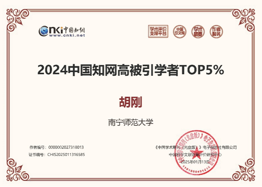 近日,中国知网下属的中国科学文献计量评价研究中心基于中国知网收录的国内学术成果,首次开展学者学术影响力客观评价,遴选了“2024中国知网高被引学者”预发布名单。必赢3003no1线路检测中心必赢3003no1线路检测中心张忠华教授和胡刚教授入选“2024中国知网高被引学者Top5%”榜单。