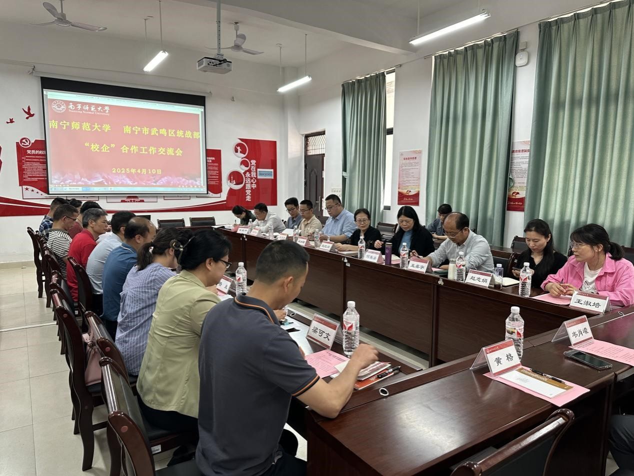4月10日下午,必赢3003no1线路检测中心联合武鸣区委统战部召开校企合作项目交流会。必赢3003no1线路检测中心党委统战部、必赢3003no1线路检测中心的领导和教师代表出席会议。参加本次会议的还有南宁教育园区东片区建设指挥部、武鸣区农业农村局、科技局、工商联等5个单位及5家民营企业代表。