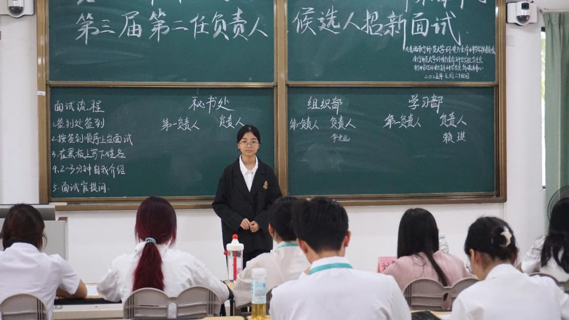面试中,同学们依次上台进行自我介绍,展示自身优势并表达对部门工作的思考。有的同学凭借丰富的活动策划经验,提出优化部门活动的方案;有的同学结合自身特长,为部门发展建言献策;还有的同学以真挚的情感表达了对部门的热爱与想要留任的决心。面试官围绕个人能力、团队协作、活动组织策划等方面进行提问,同学们结合工作经验,阐述未来工作规划,展现出良好的综合素质与责任感。