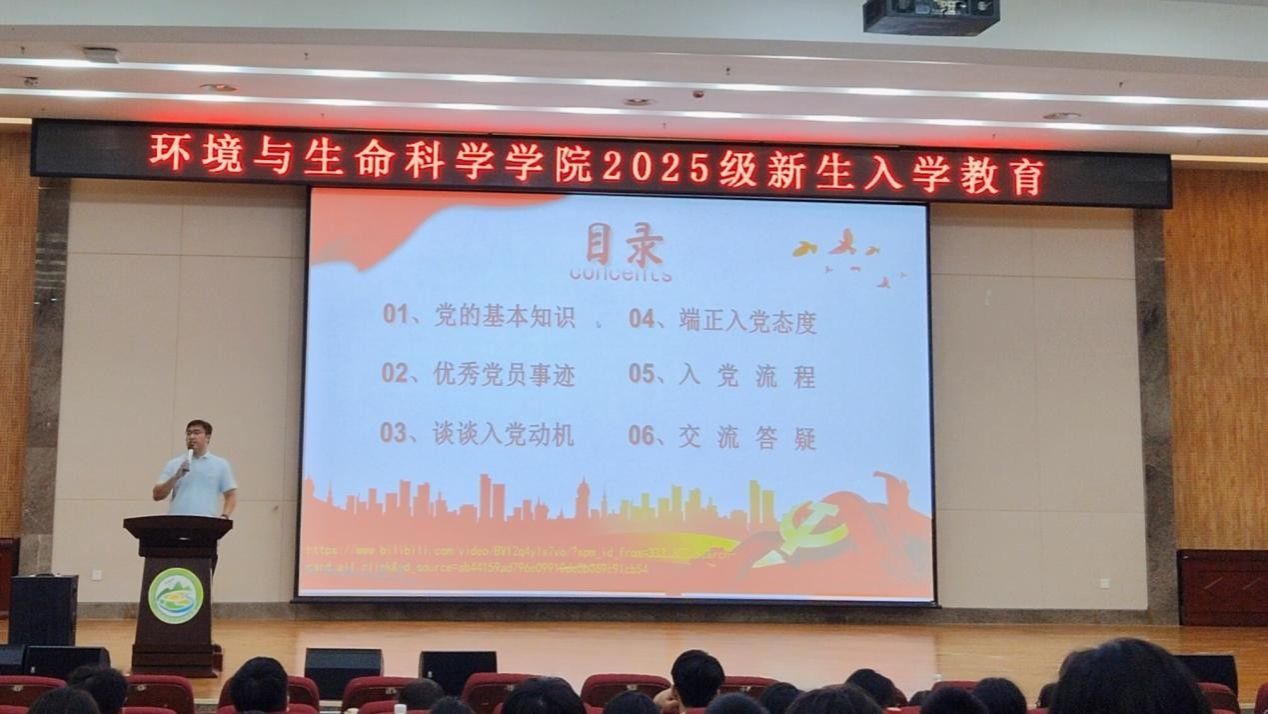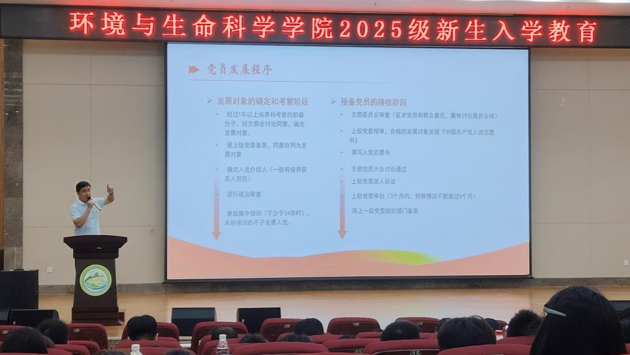 为帮助2025级新生筑牢理想信念根基,深化对党的认识,了解入党流程,必赢3003no1线路检测中心于9月7日晚在武鸣校区图书馆报告厅举办了以“青春向党,筑梦前行”为主题的新生入党启蒙教育会。会议由学院党委组织委员普胤杰主讲,参会人员为必赢3003no1线路检测中心2025级全体新生。