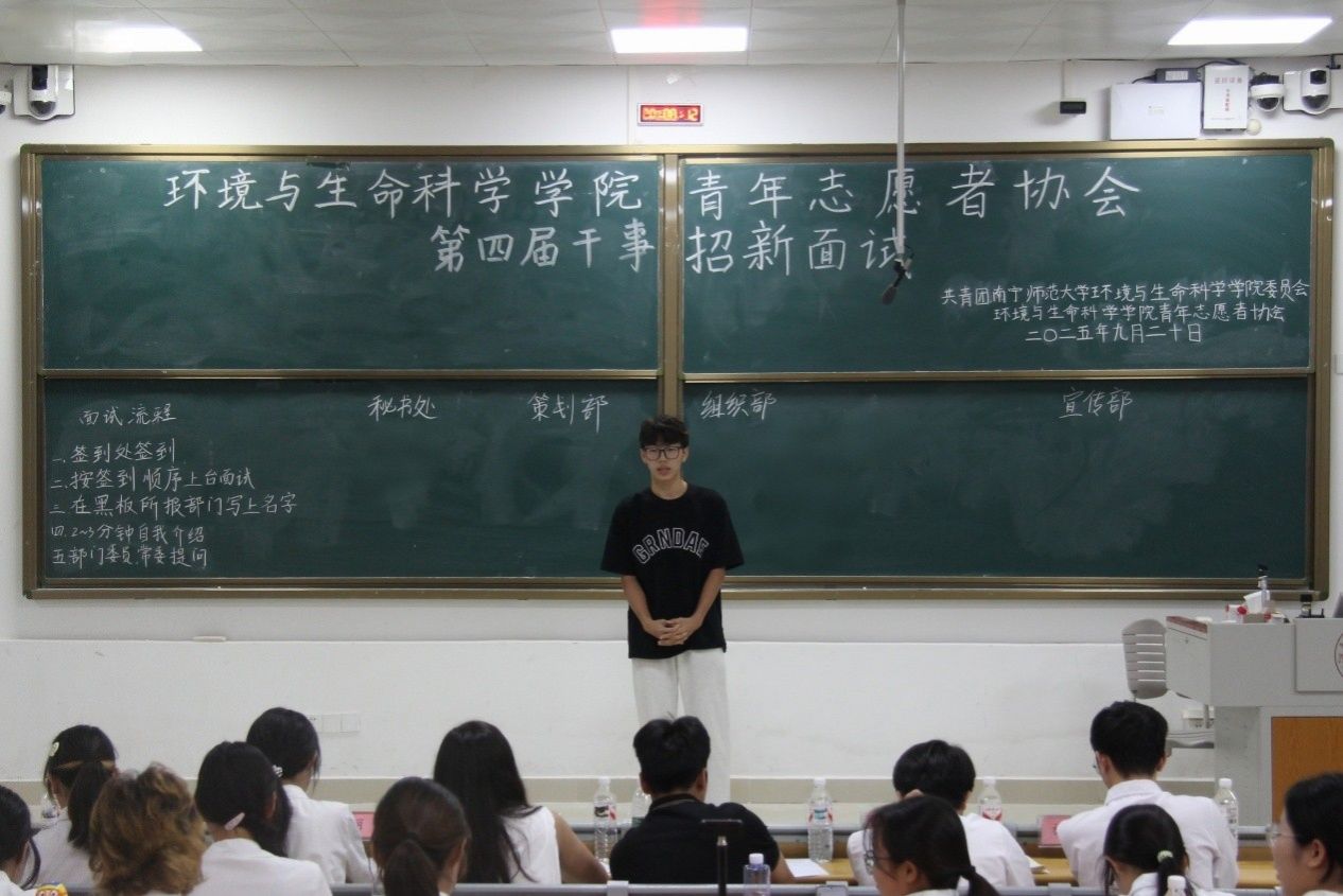 2025年9月20日晚,必赢3003no1线路检测中心青年志愿者协会第四届干事招新面试在武鸣校区一号教学楼115教室圆满完成。本次招新面试工作由学院辅导员甘佩萍、骆亮城,院青协常委团会长蓝国莲、秘书长欧亚丽、副会长蒙雨昕及全体委员共同参与。面试旨在选拔一批有热情、有担当、有能力的同学加入青协,为协会注入新鲜血液,推动志愿服务工作持续提升与创新。