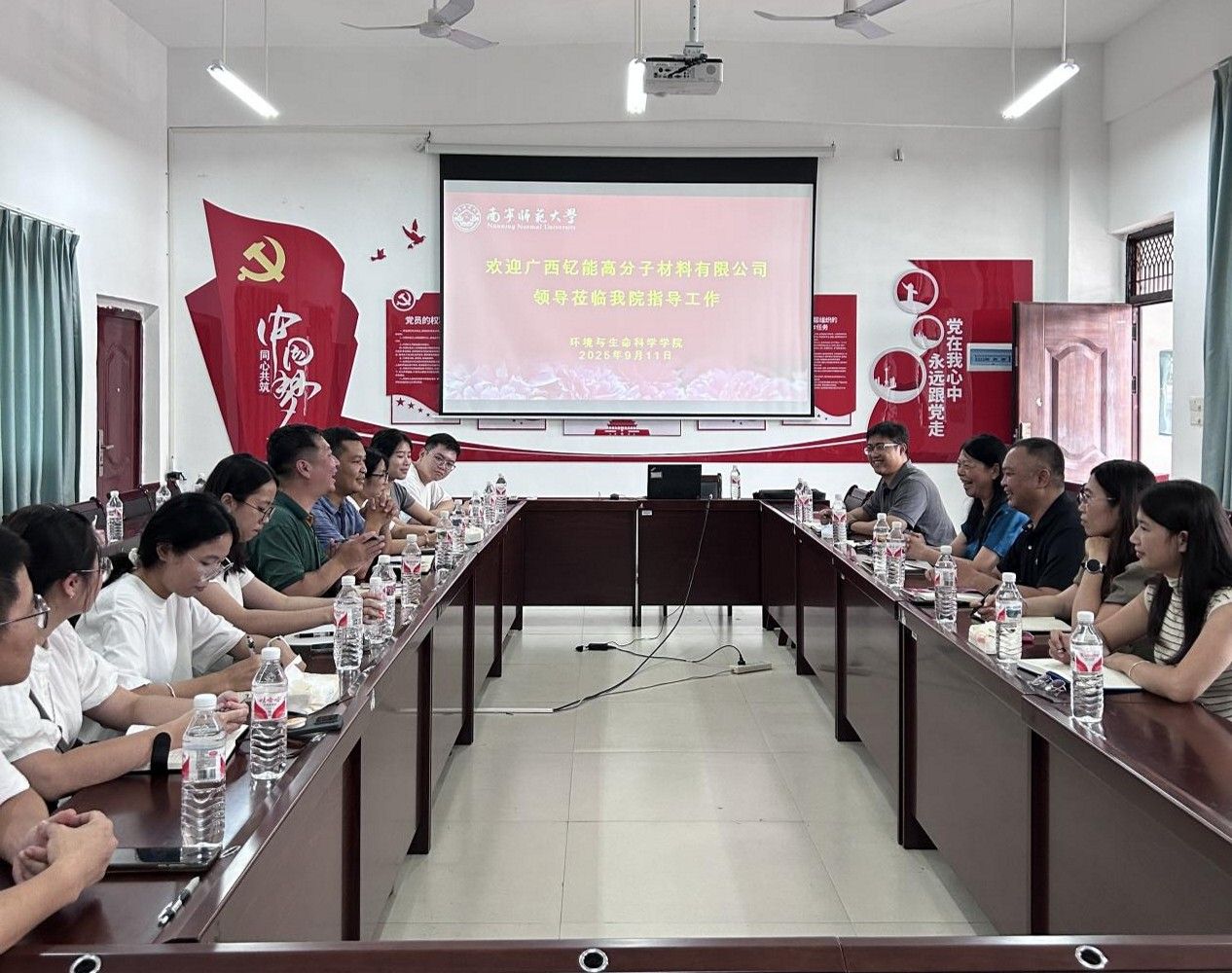 2025年09月11日,广西钇能高分子材料有限公司总经理陈闵富、企业技术总监杨芳显等携必赢3003no1线路检测中心7名优秀毕业生返校,开展校企交流座谈会。学院参会的有院长何英姿、党委副书记刘启满、组织员普胤杰、团委书记刘雅楠、辅导员甘佩萍及企业科技特派员莫莉萍。